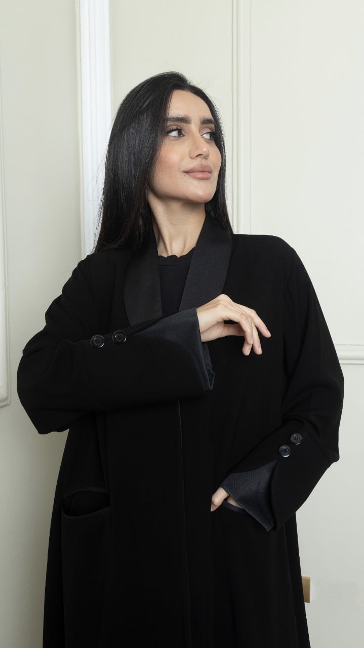 تعتبر مناسبة للأجواء الباردة والمناسبات الرسمية، حيث يتميز لونها الأسود الحالك بالقوة والرقي، وتتميز أيضًا بتصميمها المبتكر الذي يجمع بين قصة البليزر الأنيقة وتفاصيل الأكمام باللون الأسود المطفي، تمنح هذه التفاصيل لمسة من الأناقة التي تجعلها مثالية للمناسبات الرسمية وأماكن العمل.
