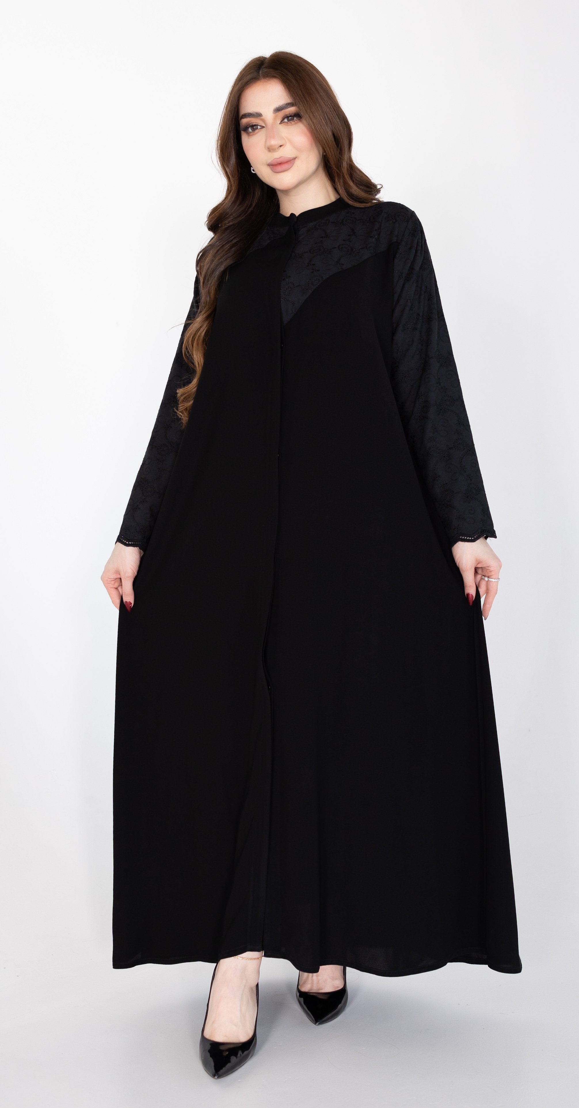 طريقة اللبس : العباية مفتوحة وبعد اللبس يتم الإغلاق .